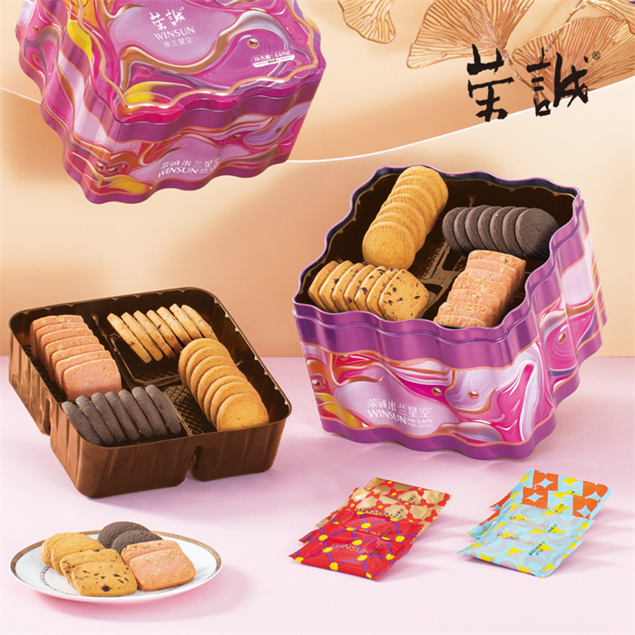 【編 碼】 CGT2501 【條形碼】 6925755534454 【尺 寸】 21x21x14.3cm 【凈含量】 448g 【規(guī) 格】 448gx12盒/箱 【內(nèi)容物】 112g原味奶油曲奇,112g巧克力味曲奇,112g蔓越莓曲奇,112g果仁曲奇
